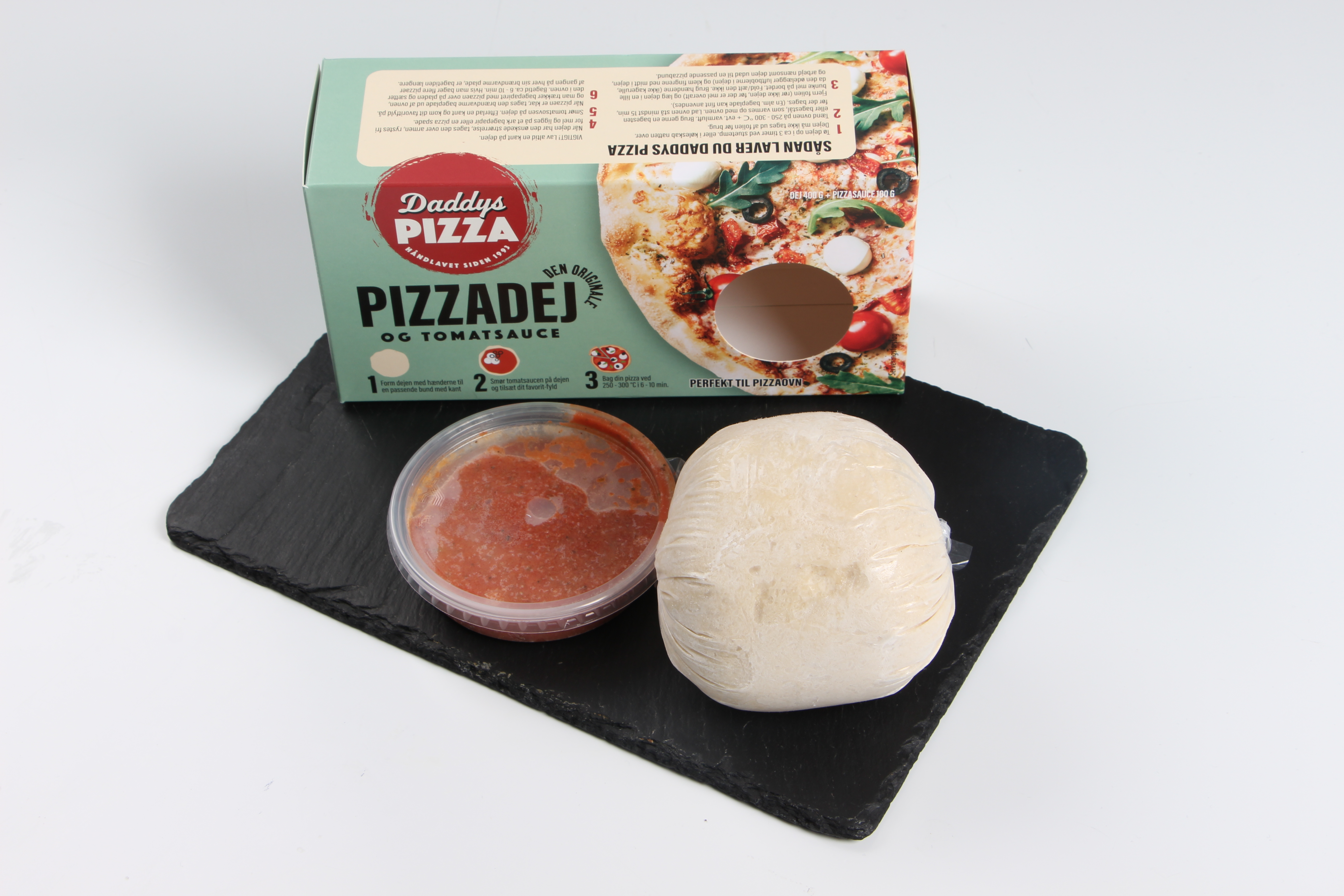Daddys pizza kit. Indeholder dej, samt tomatsauce.